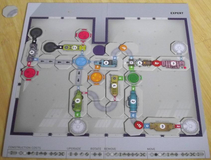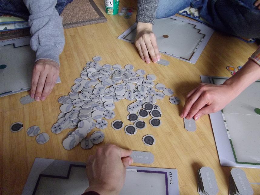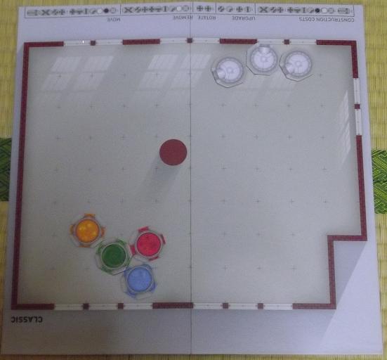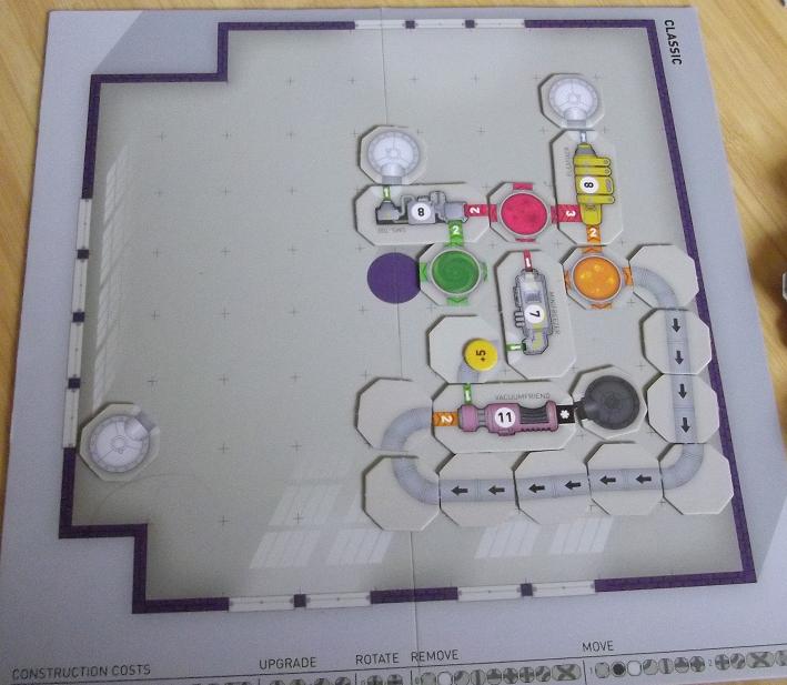 このような感じで 前のターンに建てた機械も利用し 効率よく機械を置いていくのが重要なゲームです。