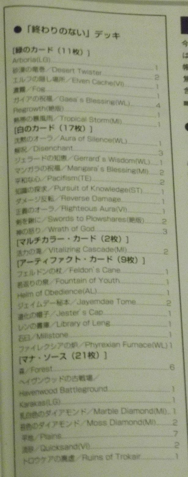 また このデッキには <Regrowth> <エルフの隠し場所>と言った 墓地操作のカードが入っていたが