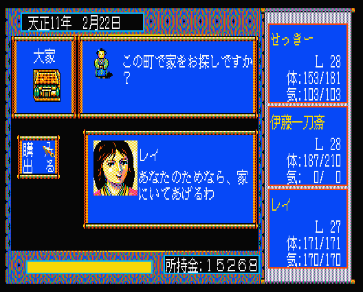 くのいち が仲間に居て かつ、その好感度が高い時 家を購入することができます。