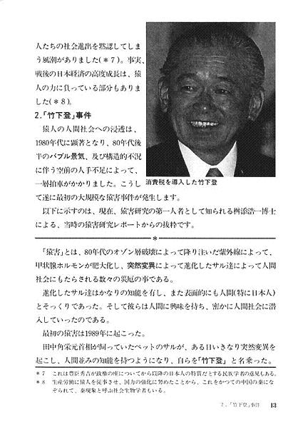 田中角栄の飼っていたサルが突然変異を起こし、「竹下登」と名乗った。