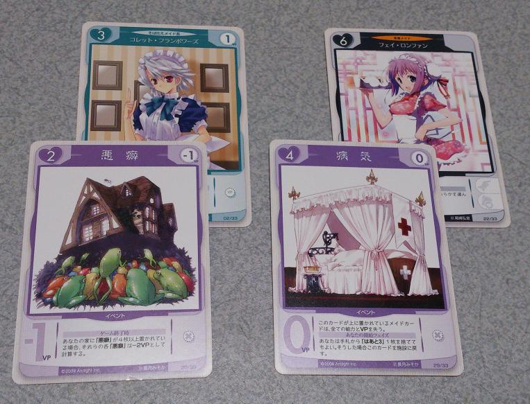 分かりやすいので 他のゲームでもこのようなカードのルール説明をする時は 「これ、専属メイドね」と言ってる自分が居たりします。